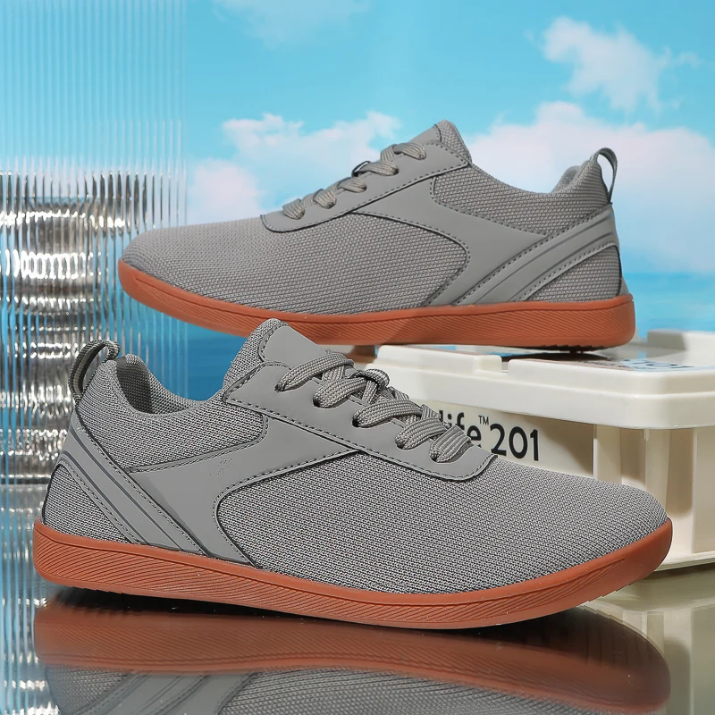 נעלי ספורט לגברים עם לוגו מותאם אישית, נעלי ספורט קלות הליכה יחפות, רשת, סניקרס מינימליסטיות עם סוליה אפס ירידה